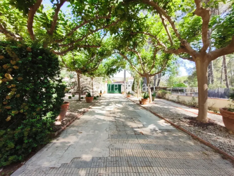 En el exterior de la vivienda podremos disfrutar de un amplio parque, una amplia piscina con depuradora y aseo propio, invernadero, pista de pádel y zona de barbacoa.