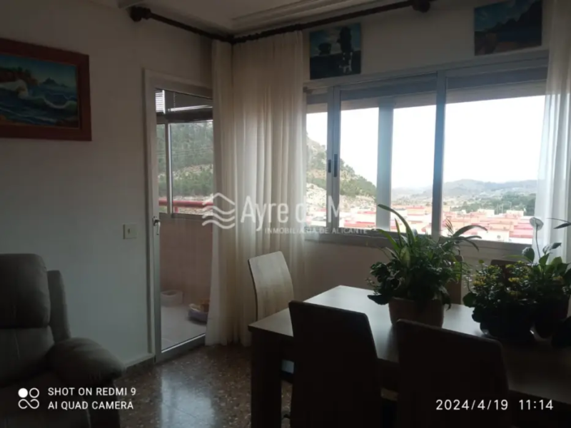 Este encantador piso en venta de 140 mts.2 con vistas abiertas a la montaña, se encuentra en una urbanización con amplios jardines. Consta de cuatro habitaciones (2 habitaciones individuales, una con salida al balcón terraza y 2 habitaciones dobles, una con salida a balcón terraza), junto con 2 baños completos, uno con bañera y otro con plato de ducha. Cocina independiente con electrodomésticos. Lavadero independiente con lavadora y secadora. Amplio salón living comedor con impresionantes vistas y salida a balcón terraza acristalado con vistas a la montaña y al mar en dias soleadosentre sus comodidades, cuenta con aire acondicionado (frío y calor), armarios empotrados, balcón, cocina completa, amplio comedor y suelos de gres. Se trata de una vivienda con excelente orientación a la montaña, muy soleada y con ventanales de doble cristal que garantizan una buena luminosidad. Además, el piso se encuentra en buen estado de conservación y se vende amueblado. Dispone también de parking. Dispone de instalación de gas ciudad para su conección. Doble ascensor. En sus alrededores encontramos el polideportivo de jijona, el supermercado mas y mas, carrefour express, estación de servicio, zonas de uso común, a 5 minutos del centro de jijona, a 5 minutos de la carretera jijona-alicante, a 5 minutos a pie del centro de salud, bares y comercios.